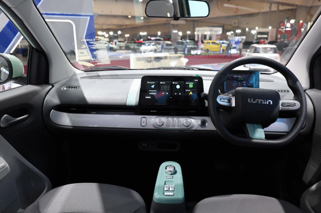 Lumin dibekali serangkaian fitur modern seperti layar sentuh 10,25 inci, Smart Keyless Entry & Start, hingga Electronic Gear Shifter yang membuat pengoperasian terasa intuitif. Untuk kebutuhan pengisian daya, mobil ini mendukung DC fast charging, mampu mengisi baterai dari 30% ke 80% hanya dalam 35 menit.